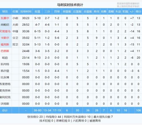 文班亚马投篮15中6,三分3中0,罚球4中4,得到16分8板1助1断2失误,正负值-14全场第二低。最近5场比赛,文班有3场命中率不超过40%。马刺主帅米奇-约翰逊赛后说:“外界对文班有着近乎苛刻的期待,总希望他能包办一切。”