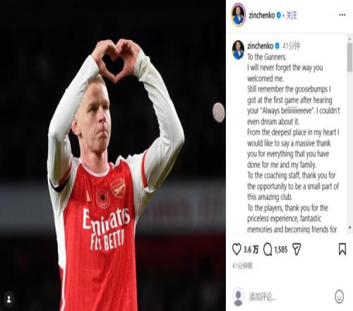 体育播报2月2日宣 阿森纳后卫津琴科转会加盟阿贾克斯,乌克兰人在社交媒体上对老东家表示了感谢。