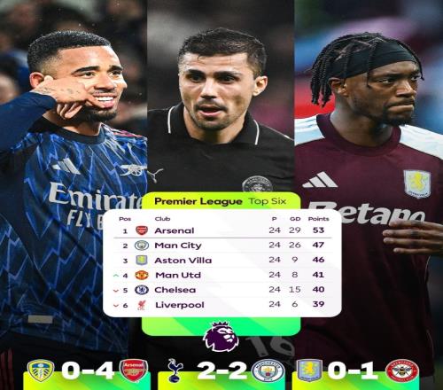 体育播报02月02日宣 英超第24轮,热刺2-2战平曼城,维拉0-1布伦特福德。前一天进行的比赛,阿森纳4-0战胜了利兹联。