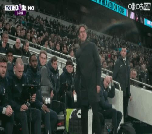 曼城第一个进球后,双方主帅的反应也完全相反,弗兰克甚至把手边的水瓶都摔到了地上↓